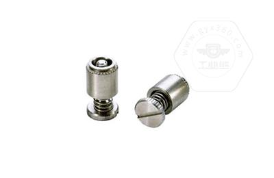 手緊螺釘的壓鉚套具有壓花齒,壓裝于于機箱或薄鈑孔內(:薄板的鉆孔徑相對應彈簧螺釘的壓齒徑有一定要求的,形成一個外露的彈簧螺釘,用手擰另一端(即手擰端).因其里面固定有彈簧,螺釘相對于薄板的另一端來回進出。