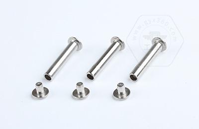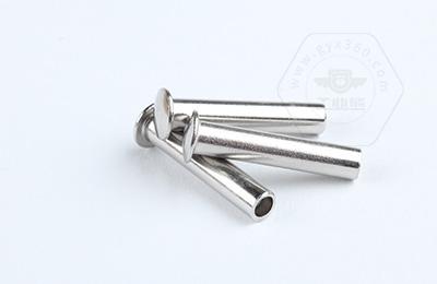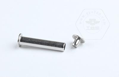 安裝時尾部空心部分受擠壓向外翻邊,形成卡扣,固定連接件。 扁圓頭半空心鉚釘主要用于金屬薄板或皮革、帆布、木料等非金屬材料的鉚接場合。