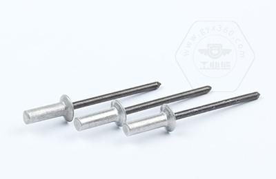 鉚接時,鉚釘釘芯由專用鉚槍拉動,使鉚體膨脹,起到鉚接作用。這類鉚釘特別適用于不便采用普通鉚釘(須從兩面進行鉚接)的鉚接場合。故廣泛用于建筑、汽車、船舶、飛機、電器、家具等產品上。