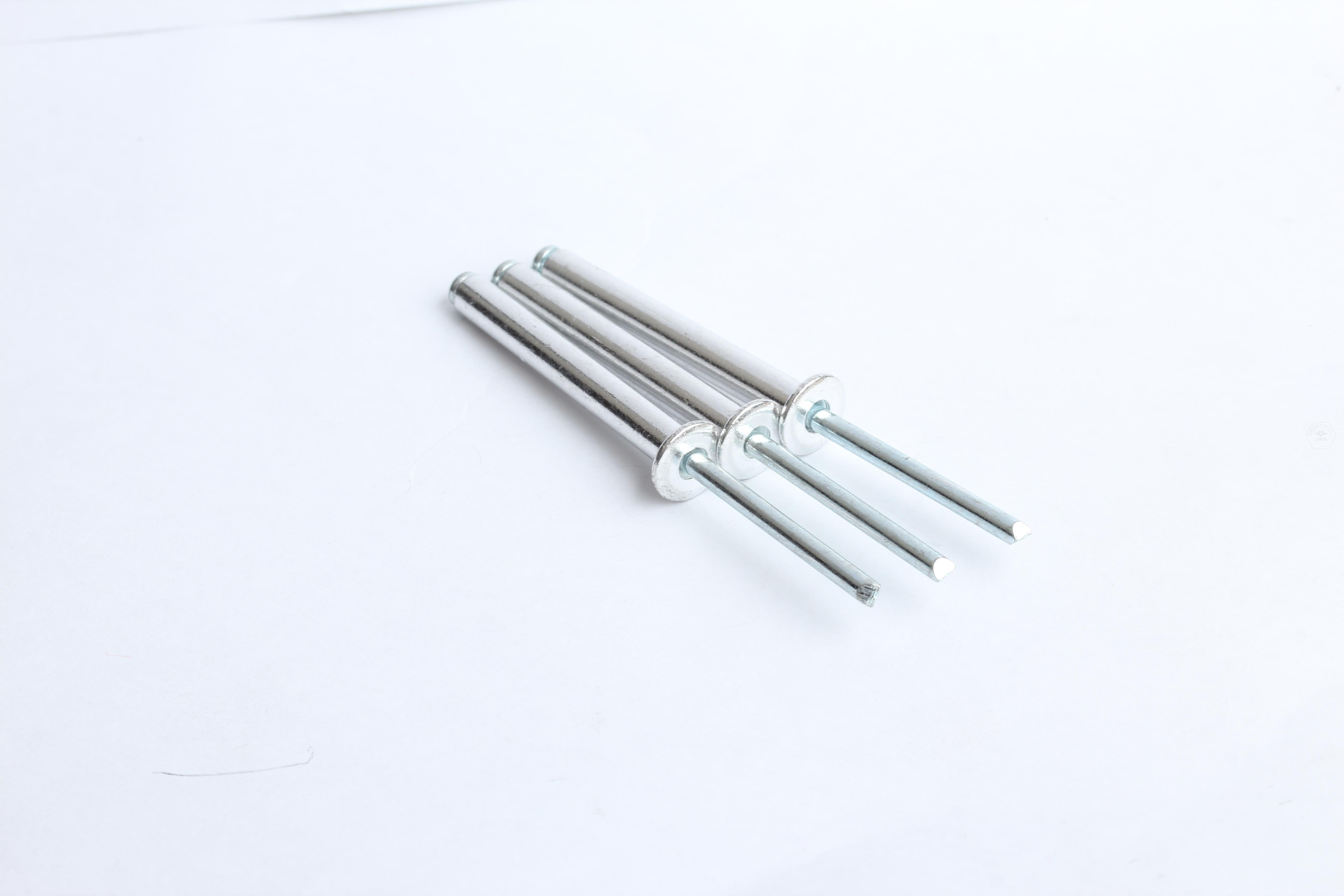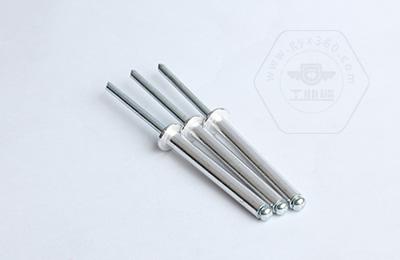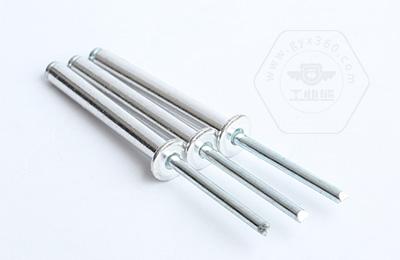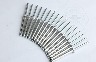 鉚接時,鉚釘釘芯由專用鉚槍拉動,使鉚體膨脹,起到鉚接作用。這類鉚釘特別適用于不便采用普通鉚釘(須從兩面進行鉚接)的鉚接場合。故廣泛用于建筑、汽車、船舶、飛機、電器、家具等產品上。
